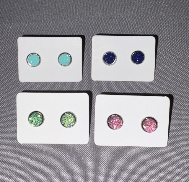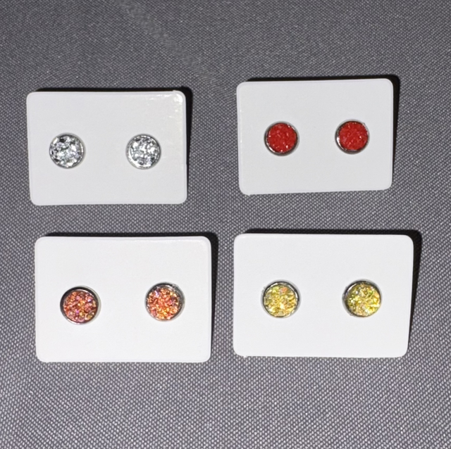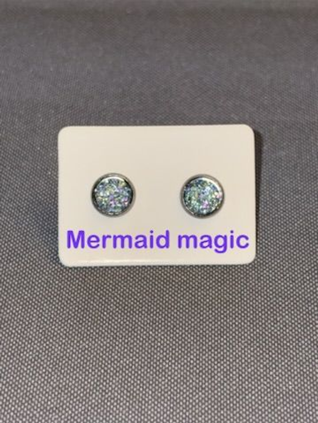 These Stainless steel round earrings are made of stainless steel and sparkling resin & glitter. Hypoallergenic stainless steel to allow even the most sensitive of ears wear them. Add a little sparkle to your day with your favourite pair of druzy studs.