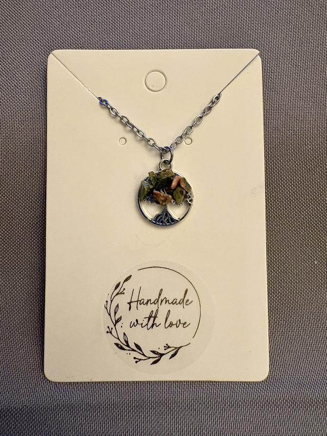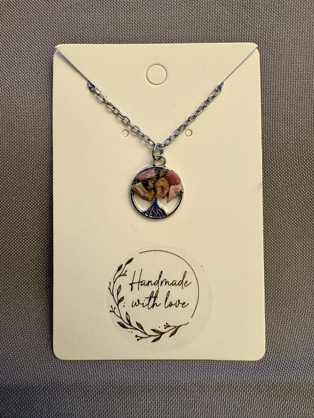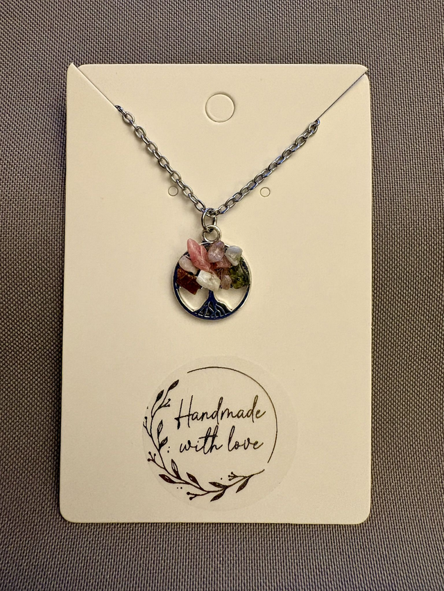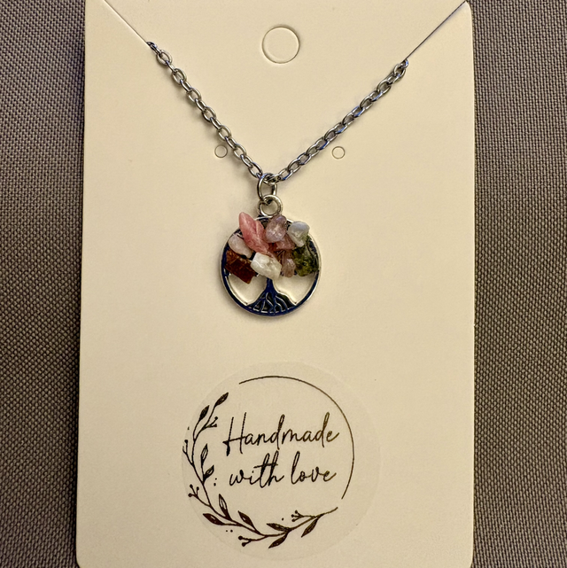 tree of life pendant with gemstone chips to add that little extra to your look. No matter the vibe these beautiful pendants come in all different stones and colours to match your energy, there’s something for everyone. All necklaces are stainless steel and 18inches for that added strength and durability.